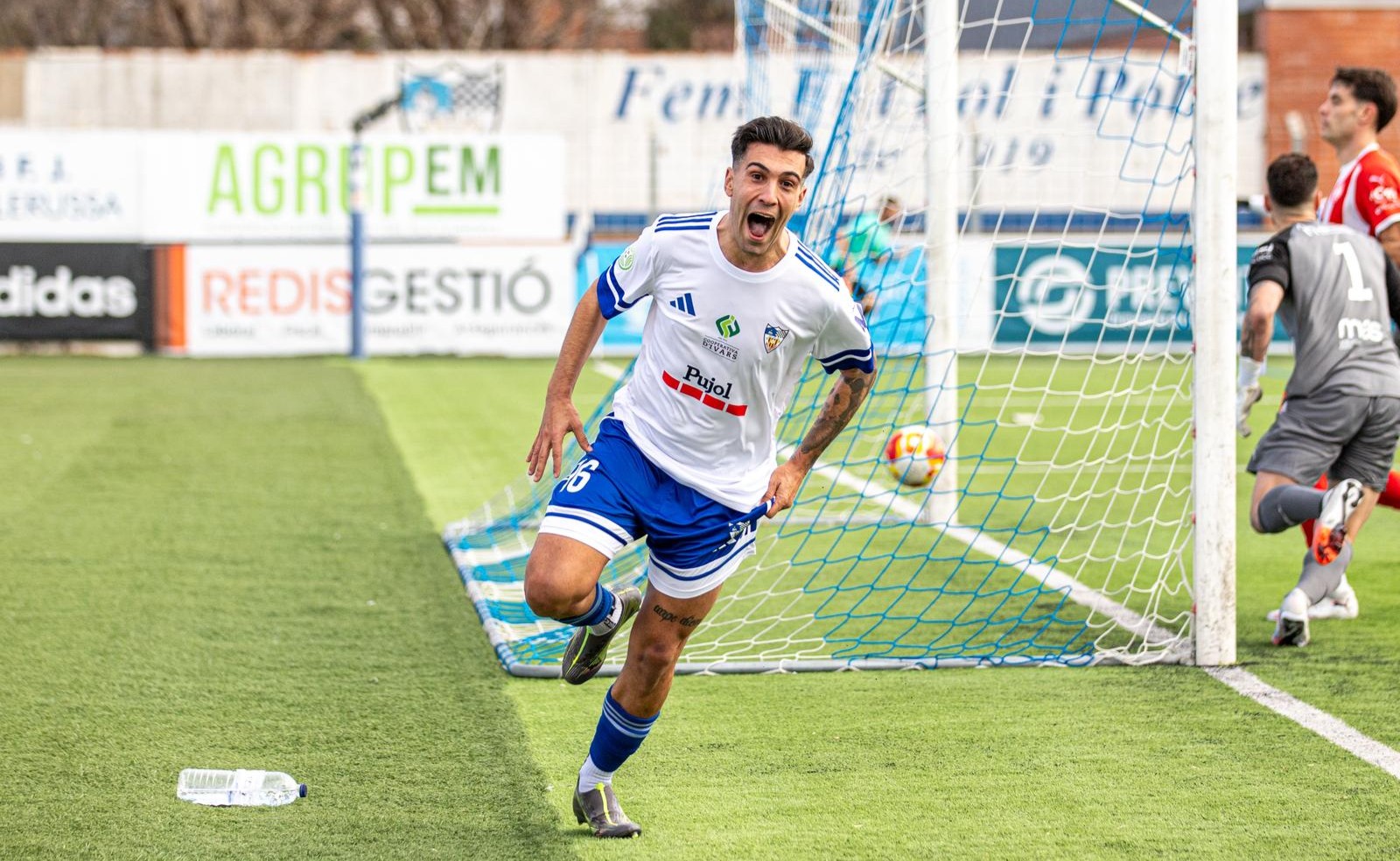 Aleix llegaba al club catalán hace diez días proveniente del Guijuelo CF, en busca de nuevas oportunidades y nuevos retos para su carrera deportiva. Su primer partido como jugador mollerussens terminó con un empate a cero en un enfrentamiento contra los terceros clasificados de la liga la pasada jornada. Este fin de semana, una jornada después, y en su primer partido en casa sentenció, el partido para poner el 2-0 para los azulones.