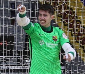 Gracias a este hito, así como a sus meritorias actuaciones, consiguió que el FC Barcelona quisiera firmarlo como tercer portero del primer equipo. Con el club blaugrana llegó a ganar Champions, Liga, Copa del Rey y Supercopa de España, en definitiva, todo lo que se puede ganar. En el conjunto de la ciudad condal ha llegado a cumplir varios de sus sueños más preciados: el Mundialito de Clubes en Bangkok y disfrutar de unos minutos en la final de la Supercopa de España frente al Inter Movistar, debido a la expulsión del portero titular.